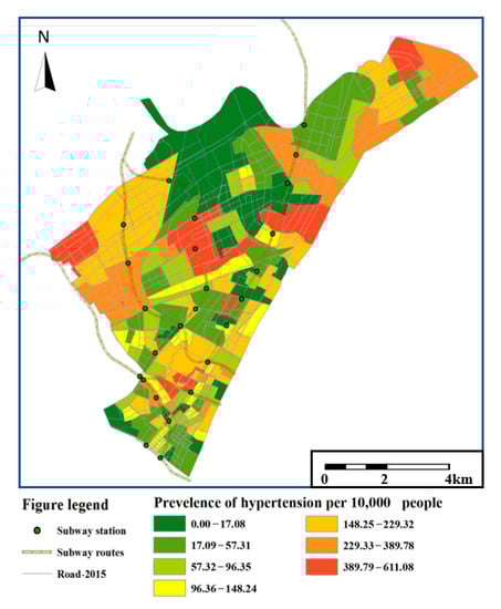 5.2. Built Environment Factors that Affect the Prevalence of Hypertension Significantly