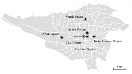 - Figure 5 demonstrates the locations of these urban spaces in Tehran
