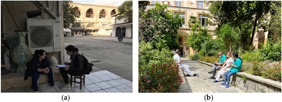 From Table 8, it can be observed that, in Turkey, all courtyards have protective entrances and historical significance. However, mosques are more well-kept, clean, and safe than khans. Moreover, mosques are richer in terms of green and blue elements than khans. While khan courtyards are primarily used for wholesale commercial activities and storage, mosque courtyards are used for religious and cultural activities and relaxation. The courtyards range in size from approximately 500 to 12,000 m2. Although the number of users varies according to the time of day, it is lower in khans than in mosques.