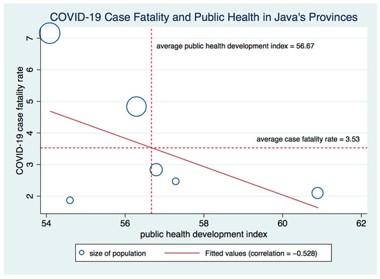 COVID-19 Case Fatality and Public Health Development Index in Java.