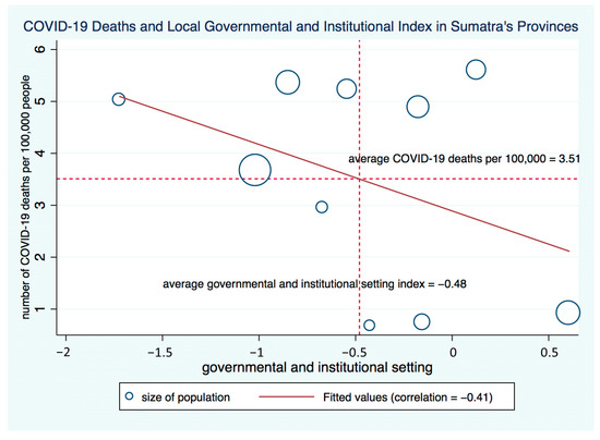 COVID-19 Deaths and Government and Institutional Setting Index in Sumatra.