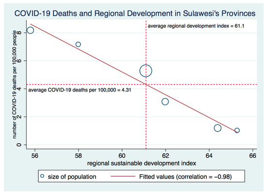 COVID-19 Deaths and Regional Sustainable Development Index in Sulawesi.