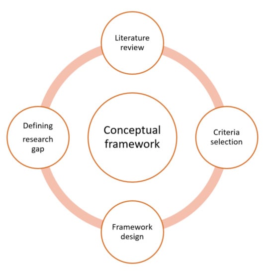 Figure 1 visualizes the conceptual framework that was used in this study. Firstly, a detailed literature review was performed. This resulted in identifying a research gap in relation to the inclusion of circular economy principles within matchmaking algorithms used in secondary raw material marketplaces. The aim of this research was to address the gap by selecting criteria to be used within the CE matchmaking framework. The criteria are defined based on a further literature review of both scientific literature in peer reviewed journals and grey literature. This was followed by the CE matchmaking framework design.