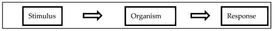 The Stimulus-Organism-Response (SOR) model was first proposed by Mehrabian and Russell in 1974 []. It considers that the assessment process of the human body is different from that of a machine. Various stimuli in the environment (S), such as auditory, visual, and olfactory stimuli, will cause changes in the state of internal emotion and in cognitive mechanisms (O), and then cause the response (R) (Figure 1).