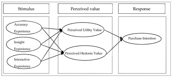 The current research on technology as stimulus is mainly reflected in the navigation structure of the website, the implementation of platform-assisted business technology, and the effectiveness of the network []. At present, AI technology, which has industry empowerment significance, has little research on its impact, as a kind of stimulation, on consumers’ internal mechanism of purchase intention. This study will creatively fill the gaps of SOR theory in the field of AI technology’s applications in online shopping.