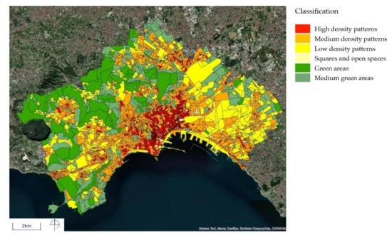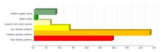 Finally, a classification for green areas was necessarily adopted to highlight the different characteristics as eco-systemic value [25,65], with a dual classification. First, these were classified according to the percentage of tree cover and the type:
