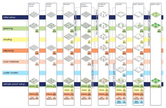 - Reven, J. Cooling the Public Realm: Climate-Resilient Urban Design. In Resilient Cities. Local Sustainability; Otto-Zimmermann, K., Ed.; Springer: Dordrecht, The Netherlands, 2011; Volume 1, pp. 451–463. [Google Scholar] [CrossRef]