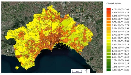 - Di Martino, F.; Sessa, S. Metodologia e modello gerarchico per la valutazione della vulnerabilità climatica del sistema urbano. In Progettazione Ambientale per L’adattamento al Climate Change. 2. Strumenti e Indirizzi per la Riduzione dei Rischi Climatici/Environmental Design for Climate Change Adaptation. 2. Tools and Guidelines for Climate Risk Reduction; D’Ambrosio, V., Leone, M.F., Eds.; Clean Edizioni: Naples, Italy, 2017; pp. 84–105. Available online: http://www.sitda.net/downloads/biblioteca/Environmental%20Design%20for%20Climate%20Change%20adaptation.%202.%20Tools%20and%20Guidelines%20for%20Climate%20Risk%20Reduction.pdf (accessed on 1 February 2021).