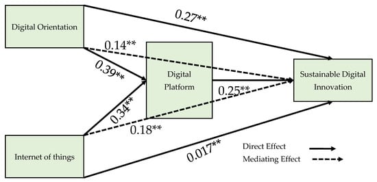 Digital platform mediates the relationship between the digital orientation and the sustainable digital innovation.