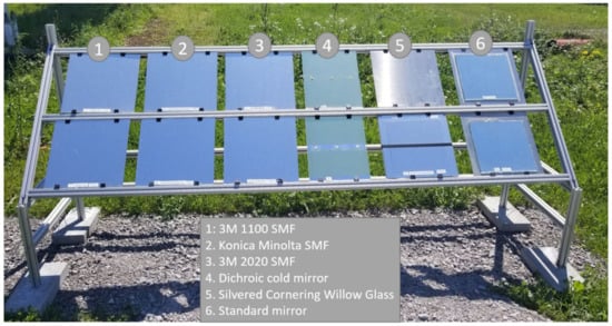 - Sutter, F.; Meyen, S.; Fernández-García, A.; Heller, P. Spectral characterization of specular reflectance of solar mirrors. Sol. Energy Mater. Sol. Cells 2016, 145, 248–254. [Google Scholar]