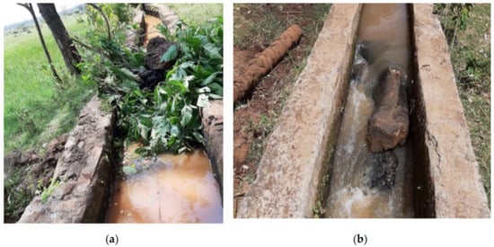 Most of the existing studies point to the soil erosion in the upper and middle river catchment as a prime cause of sedimentation, whereby high sediment loads pass through the intake structure of irrigation schemes and accumulate in the (unlined) canal network, thus resulting in excessive sedimentation [12,13,14,15]. Other studies have documented that the causes of sedimentation vary according to different stakeholders’ perceptions [6]; some ascribe sedimentation to design problems, most engineers identify soil erosion in the upstream river catchment and a lack of appropriate technology and materials as prime causes, and farmers see poor operation and maintenance as a major cause.