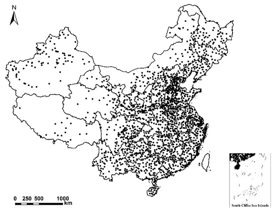 Distribution map of meteorological stations in China used in the study.