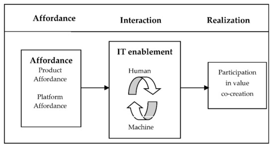 It can be seen from the above literature research that it is necessary to have a clear theory to clarify the internal mechanism of IT enablement, so as to solve the logic of IT enablement promoting value co-creation; and it should be put into an integrated framework to study value co-creation and business model innovation. Theoretically, the affordance theory will provide a basis for us to reveal the internal workings of IT enablement, and the literature [37] will provide a good reference for us to build the overall framework of value co-creation and business model innovation. In summary, it is widely recognized that IT can facilitate value co-creation [10]. However, the intrinsic mechanisms of how IT enables value creation participants, its ways, means, paths, and the mechanism through which technology confers capabilities to value creators, are not well understood.