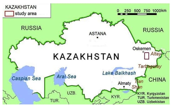 - Yegorina, A.V. Physical Geography of East Kazakhstan; EHI Press: Ust‘-Kamenogorsk, Kazakhstan, 2002; 181p. (In Russian) [Google Scholar]