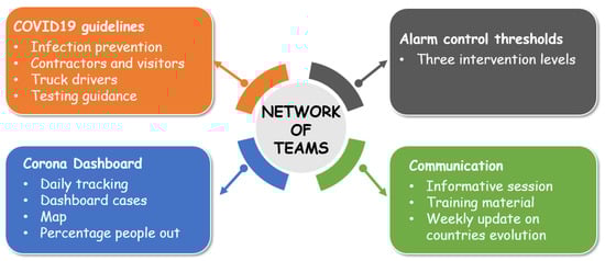 Multidisciplinary management and cooperation are essential aspects of the network of teams, because the COVID-19 crisis presents a high degree of complexity requiring different expertise. The GCT, in fact, is able to analyze and rationalize all of the demands, making all decisions and preparing guidelines based only on information scientifically validated by the MUT, and periodically updated taking into account new proven scientific evidence. Meanwhile, the network of LTs constantly updates measures adopted according to country regulations, and offers effective operational guidance to all of the sites. This serves to translate general indications into actual operating procedures, choosing the most correct measures to prevent exposure to the risk of contagion and to protect workers health in different epidemiological contexts.