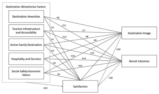 2.1. Destination Attractiveness Factors—Antecedents of Satisfaction, Destination Image, and Revisit Intention