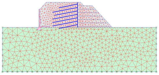 The model was run with the standard fixities and earthquake boundaries. Furthermore, the model’s width was selected in such a way that the influence of boundary conditions was minimized in the results. The Rayleigh damping was used to consider material damping [27]: