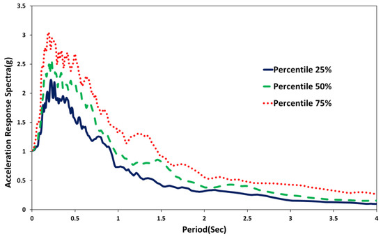The percentiles of acceleration spectra of earthquake records.