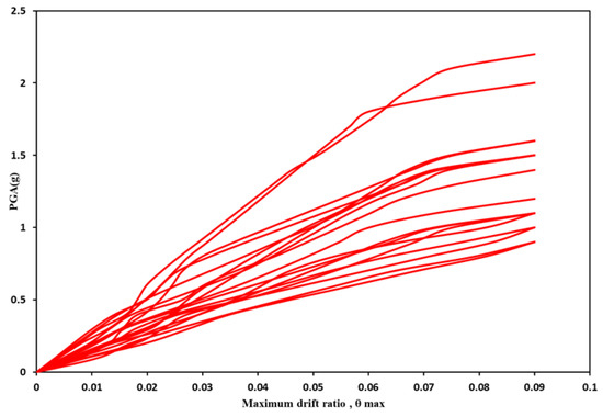 Table 3 shows the characteristics of 20 earthquake ground motion records with different ranges of PGA from medium to strong motions, which are used to perform incremental dynamic analysis (IDA). This set of records were selected according to the criteria proposed by FEMA-P695 [30].