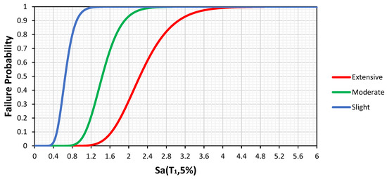The fragility function was formulated by Cornell et al. [35], and the fragility curves are presented as a lognormal distribution: