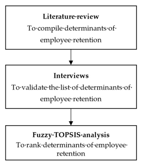 The rest of the paper is organized as follows: the next section presents the literature on employee retention, determinants of employee retention, and the current status of the South Korean construction industry. This is followed by the presentation of the research methodology in Section 3. Subsequently, Section 4 shows the analysis of fuzzy TOPSIS to rank the determinants of employee retention. Finally, Section 5 discusses the research findings, limitations, and proposes future research directions to enhance the understanding and knowledge of employee retention.