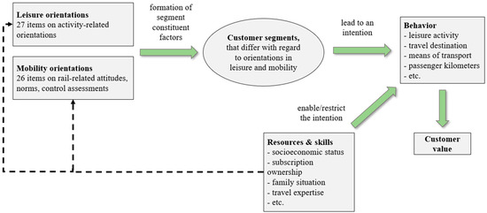 Another limitation is that rail providers cannot determine with precision the segment to which a customer belongs. However, social media will likely soon provide sufficient information to address members of segments with tailored offers and mobile-based communication [35,36]. This study was conducted in the context of railways in Switzerland. Switzerland is known for its good public transport network and the relatively high willingness of its inhabitants to use the train in their leisure time. To transfer this study’s results to other countries, further research is needed.