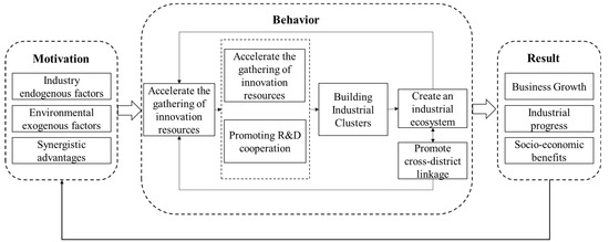 | Behavior | Accelerate the gathering of innovation resources | Break down barriers and open channels; supporting environmental construction; attracting investment |