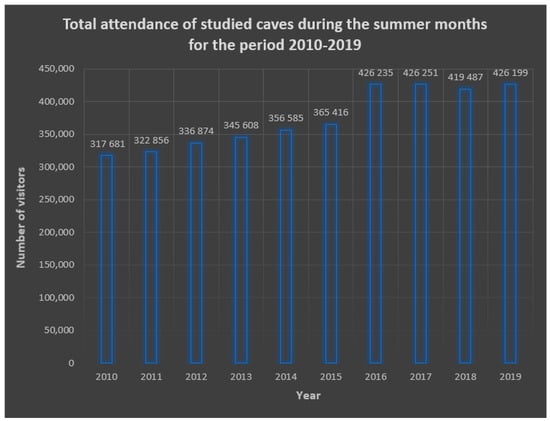 - A relatively similar amount of cave attendance in the years 2016–2019 is partly due to limitations, namely the ceiling of attendance at several caves.