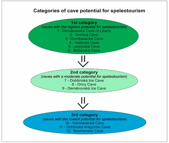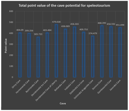 - We assumed that the Demänovská Cave of Liberty would have the most significant potential for speleotourism. This assumption was proved. The cave is often mentioned in the media, in various promotional materials, and book guides for the domestic and foreign markets. It is located in one of the most visited valleys in Slovakia, where tourism is distributed evenly throughout the year. The character of the cave supports the point evaluation of the potential. The cave has a varied and lively decoration on the whole tour route, dominated by massive and large spaces, underground lakes, and a watercourse. In our opinion, only the Domica Cave in the Slovak Karst can compete with it, which was also confirmed by its second-highest value of potential. The Domica Cave has a similar character of spaces as the Demänovská Cave of Liberty with rich and varied decoration, huge spaces, underground lakes, and a watercourse. In addition to the Demänovská Cave of Liberty, the Domica Cave also has the option of boating on an underground watercourse, the occurrence of archaeological finds, including paintings, and the UNESCO World Natural Heritage brand is not negligible.