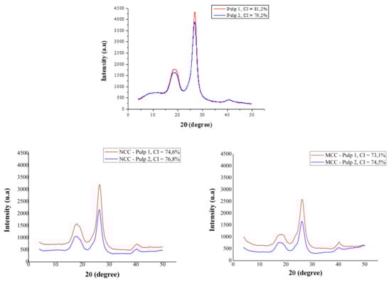 - Lengowski, E.C.; Muniz, G.I.M.; Nisgoski, S.; Magalhães, W.L.E. Cellulose acquirement evaluation methods with different degrees of crystallinity. Sci. For. 2013, 41, 185–194. [Google Scholar]