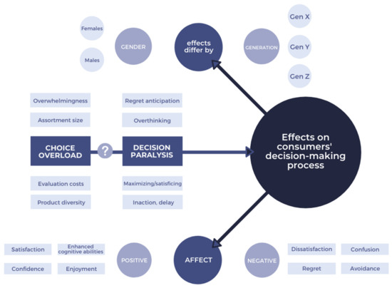 Construct map of overchoice, decision paralysis, and the effects that will be tackled in the research. Source: self-elaboration.