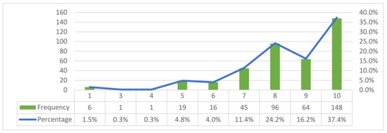All items, except the demographics, were formulated under a derivative of the Likert scale, an attitudinal agreement and ordinal scale, using grades from 1 to 10 (1–total disagreement, 10–total agreement). However, as respondents would perceive the numerical distance between consecutive grades to be equal across the entire scale, this scale could be considered an interval scale and, therefore, numerical.