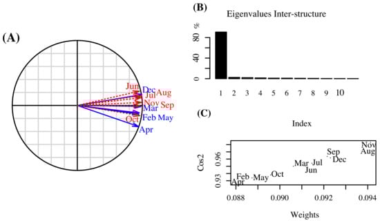 - Mendes, S.; Fernández-Gómez, M.J.; Pereira, M.J.; Azeiteiro, U.M.; Galindo-Villardón, M.P. An empirical comparison of Canonical Correspondence Analysis and STATICO in the identification of spatio-temporal ecological relationships. J. Appl. Stat. 2012, 39, 979–994. [Google Scholar] [CrossRef]