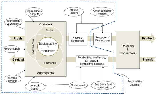Conceptual framework for the sustainability analysis of the fresh produce supply chain.