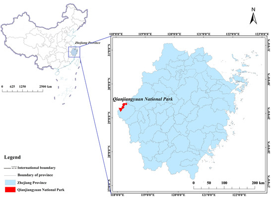 National parks are one of the most important types of protected area in China. China has been building a national park system since 2015 with the main aim of protecting the integrity and authenticity of the natural ecosystem. The first batch of parks, including 10 pilot national parks, was completed in 2020. Qianjiangyuan National Park, which focuses on the forest ecosystem, is one of the 10 existing pilots of the national park system in China and is in Zhejiang Province, one of China’s most economically developed provinces. With rapid urban and rural development, rates of habitat loss and fragmentation have increased [1,2]. In this context, connectivity between habitat patches is becoming even more important, as it may be the only way to provide adequate habitat for wildlife populations [3].