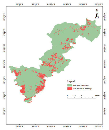 Distribution of protected and unprotected landscapes in Qianjiangyuan National Park.