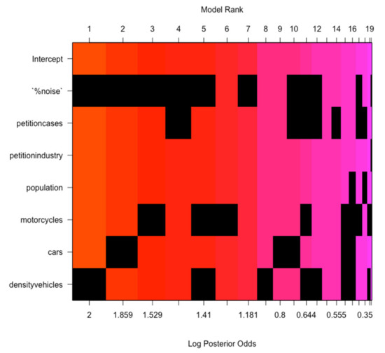 The Bayesian approach was developed by Bayes to assess a population’s initial distribution type prior [37,48,49]. The whole dataset would then be associated with information from the sample to estimate population parameters [39]. In Table 2, regarding the noise pollution modeling, we show 10 different priors and the best prior is Bayesian-MCMC-AIC with R2 84.70%. If we look in more detail at Table 2, the prior setting for EB-local and EB-global has the same value. The objectives of the two priors are to find the global empirical Bayes estimates of g in Zellner’s g-prior and model probabilities [50].