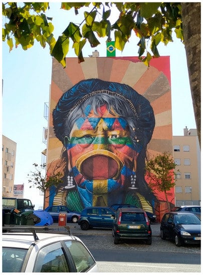 At present, this reconversion of public spaces is also being applied in peripheral areas of large cities [28], such as San Pablo in Seville, Quadraro and Torpignattara in Rome, and Marvila in Lisbon (Figure 3) and in rural areas, such as Dolores in Uruguay, Ordes and Fanzara in Spain, Dozza in Italy [29], and Chemainus and Sussex in Canada [11,21]. In many cases, the reason for this resignification and updating of public spaces resides solely in the fact of beautifying the actual environment, but directly or indirectly, presently, these places end up becoming tourist attractions due to the high demand of creative cultural landscapes by visitors. On the other hand, as recipients of cultural tourism, this reconversion generates new opportunities around the cultural and tourism industry, generating potential spaces for the creation of alternative tours to mass tourism and contributing to the decentralization of traditional tourist destinations [19,30].