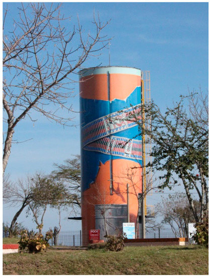 On the other hand, the study on mural production in Uruguay is presented as a symbol of contemporary Uruguayan cultural heritage, despite the fact that it had previously been understood as an anecdotal art form subordinated to other disciplines, such as easel painting and architecture [3,41]. That is why this study aims to reactivate these spaces as tourist products [13,14,15], stimulating the community and public and private institutions to preserve and extend these mural landscapes [49,50]. It is worth mentioning that the creation of new symbolic values in the public space through mural painting generates assimilation by the community in many cases, leading them to become part of the community’s popular imagination and giving rise to heritage processes, as has occurred, for example, in San Gregorio de Polanco and Rosario [30]. In the case of the MAAIS, the OSE Tank painted by the Clever Lara Workshop in 1993 has become the emblem of the city and is used as one of the main elements in San Gregorio’s tourist advertising campaigns. This fact could lead us to think that some of the mural works that are currently being painted, especially those that belong to the urban art and graffiti scene [56], could become identifying elements over time [21]. Therefore, it is necessary to update the action protocols for these type of works, characterized by being ephemeral both in conceptualization and conservation terms, so that they can be preserved for future generations [7,12,35,57].
