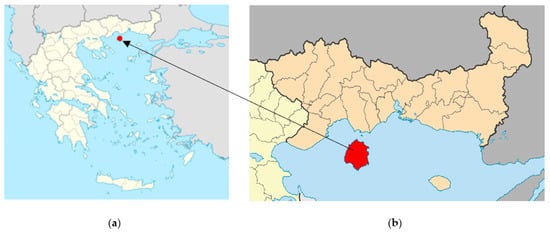 (a,b) Map of location of Thassos island (source: https://en.wikipedia.org/wiki/Thasos, Accessed on 1 March 2021).