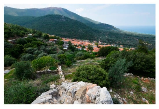 Landscape: The landscape of Aigialeia reflects a high heterogeneity of patches and landform (semi-mountainous and mountainous), with an altitude between 250 and 850 m, while the soil varies from white limestone to fertile sandy loam, but with good drainage. The landscape consists also of multiple canyons with rich vegetation and small streams that flow into the sea, which can be attributed to the area’s mild climate. Extensive olive groves are mixed with the vineyards (Figure 7).