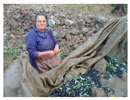 Several decades ago (30–40 years), the collection of the olives during November and December was a seasonable fulltime task, involving families and friends harvesting the groves, and also managing landscape elements like the stone terraces. These two autumn months of collection in the olive groves was part of the cultural identity, people gathered to work, but also to cook, sing, exchange news and tell stories. The whole procedure aided the strengthening of social bonding. Although the ‘fast society’ of the 21st century does not allow such ‘luxuries’, people still get together and create a social event and element of culture out of olive collection, rather than just focusing on quantifiable economical parameters like yield and profit (Figure 11).
