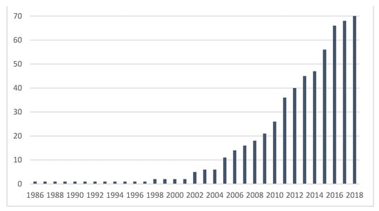 It was found that a wide range of terms were used inconsistently throughout articles to refer to the same phenomena. Of the 64 articles that met the criteria, 10 specifically used the terms “social sustainability in design”, “socially sustainable design”, “socially sustainable products”, “design for socio-ethical sustainability” or “design for social sustainability”. However, different terms were often used throughout the articles. For example, multiple articles used the term “socially sustainable products” interchangeably with “socially responsible design” or “design for social innovation”, and “design for social innovation” was used interchangeably with “social sustainability” and “sustainable development”. These findings reflect a lack of precision in the literature and highlight that existing knowledge is disparate and fragmented between different approaches. Table 2 provides a summary of the related terminology to D4SS found in the literature and offers some exemplary definitions of these related terms. This table is roughly organised in chronological order to reveal the evolution of different approaches in the field. Figure 3 shows the cumulative frequency of publications on D4SS. This figure indicates a steady growth in publications related to D4SS, mainly dating from the last two decades.