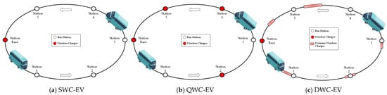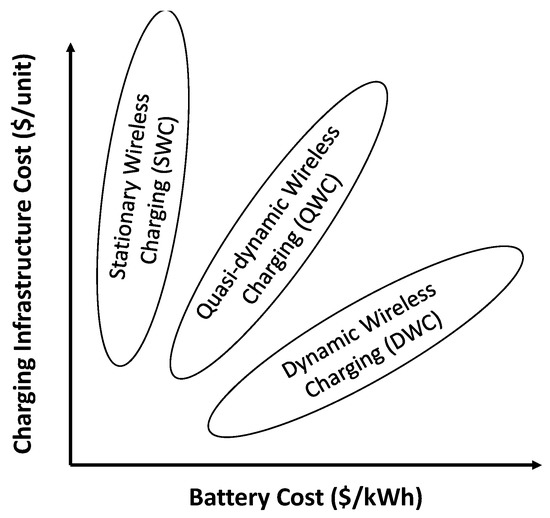SWC is only parked or idle charging, QWC is when a vehicle is moving slowly or is in stop-and-go mode, and DWC is supplied even when the vehicle is in motion. The cost and benefit of each system depends on various factors, such as route and fleet size, service range, battery prices, and installation cost [2,5].