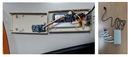 A low-cost electromyograph, which combined a Groove EMG sensor and an Arduino MKR1000 for data acquisition, was used to collect the EMG data. The Groove EMG has two amplifiers and a high-pass filter. The electromyograph utilized the Arduino 12-bit resolution ADC. The two amplifiers were an instrumental amplifier and an operational amplifier with regulated gain. The high-pass filter removed the DC offset at 0.16 Hz. The sampling rate used in this device was 1000 Hz, and the EMG device captured muscle activity signals, as illustrated in Figure 4.
