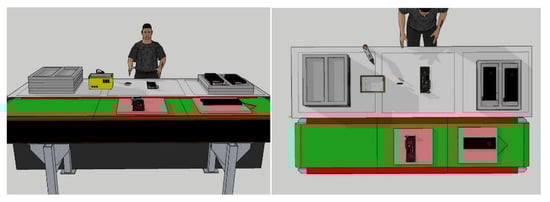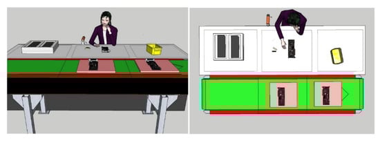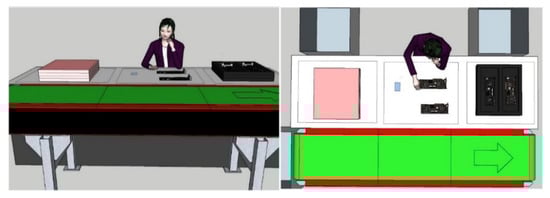 Precisely setting up a scenario is necessary for solving the disadvantages of humans working with robots. In addition, collaboration with robots helps to reduce fatigue and supports the safety factor for humans []. This setting will be a solution for companies when facing problems related to the human factor while also allocating affordable capital for robots. The collaboration system will offer the separation of jobs that are detailed and allocate them to humans and robots, which will mitigate human fatigue. This is supported by the collaboration’s main target, which is to give robots the ability to adapt and a greater capability for understanding human conditions []. This adaptive characteristic for robots allows them to identify the status of humans throughout the working process []. Additionally, for robots to understand the human status, we need to know each characteristic of the activities carried out by humans. A harmonious human–robot collaboration not only achieves the productivity aspect of sustainability, but also increases the well-being of workers, an important indicator of social sustainability with manufacturing systems.