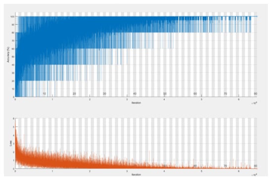 An extension of the ANN, named deep learning, can reduce the learning cost. A convolutional neural network (CNN) is an algorithm in deep learning that is able to process images as the input and determine the characteristics used in the learning process for differentiating motions from one another. Here, the CNN was used to learn the characteristics of motion signals produced by the human in the scenario. The CNN is a famous architecture in deep learning and is used to classify images with remarkable results []. The CNN consists of a step for the extraction of characteristics, followed by a typical feedforward neural network (NN), which is used to perform discrimination. Generally, the CNN architecture consists of three layers: a convolutional layer with a finite number of filters for data input, a pooling layer to reduce the dimensions, and fully connected layers []. A CNN works with image input, which passes through many deep layers within the architecture to find the best characteristics of the images with a large scale of data []. Erözen employed a CNN to classify 6 hand gestures using spectrograms from STFT as input images with 8 channel sensors and achieved 83.97% accuracy [].