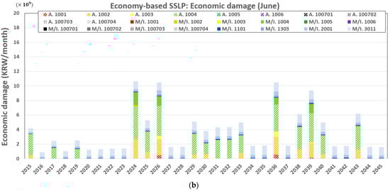 - The results of the reliability-based SSLP allocation show that, according to the considered climate change scenario, the water shortage in June over the next 30 years will be an average and maximum of 9.7 million m3/month and 32.3 million m3/month (2024), respectively, corresponding to average and maximum economic damages of 5.0 billion KRW/month and 16.9 billion KRW/month (2024), respectively.