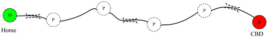 Studies on ridesharing can be broadly categorized into two major aspects: for network and for one-to-one link. Regarding the network, one investigates the network matching algorithm design [2] in order to maximize the total travel distance saving and distribute the benefits generated due to the shared trips among participants, which is often formulated as an optimization problem. Another problem is the network equilibrium design under the OD-based cost element of a ridesharing compensation strategy. These models can be solved using Nash equilibrium or Wardrop theory, balancing trip cost among different lanes or different roads to meet the goal of UE (user equilibrium) and SO (system optimal). With regard to link, a ridesharing system is often regarded as an extension research of the morning commute problem based on the bottleneck model [3]. So, investigators examine commuters’ decision-making regarding ridesharing as a sustainable alternative choice to trade off the impact on traffic congestion and encourage policies such as HOV/HOT lanes. It can also be used for evaluating different price compensation policies [4,5].