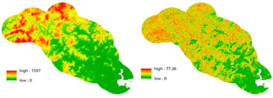 The ALOS DEM and slope data in the Jinjiang River Basin are shown in Figure 8.